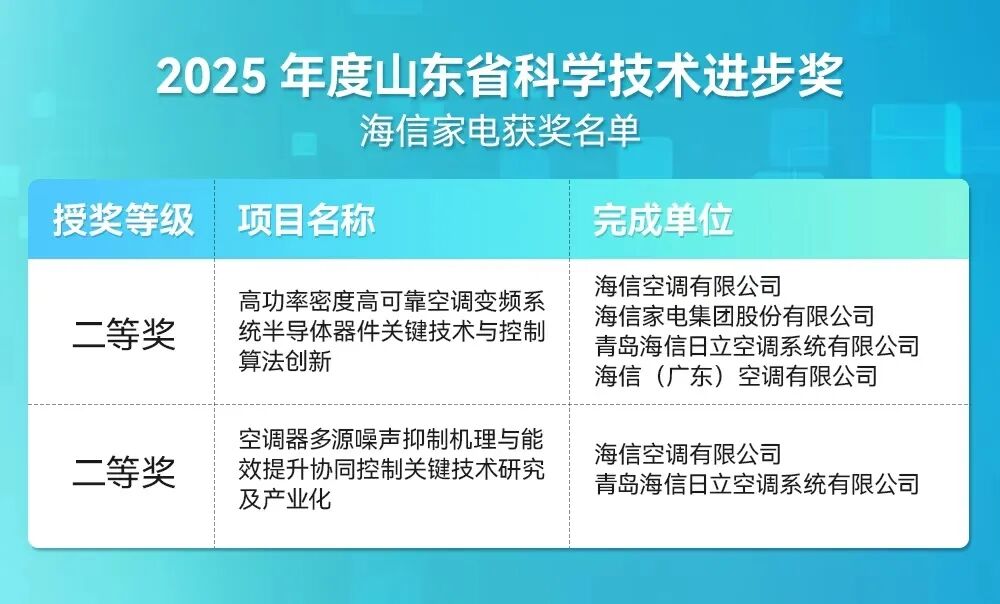 近日,山东省科学技术奖、青岛市科学技术奖分别对2025年度技术进步奖和技术发明奖进行评审结果公示,海信家电(SZ 000921,HK 00921)旗下冰箱、空调等产业公司7项科技荣誉入围名单。