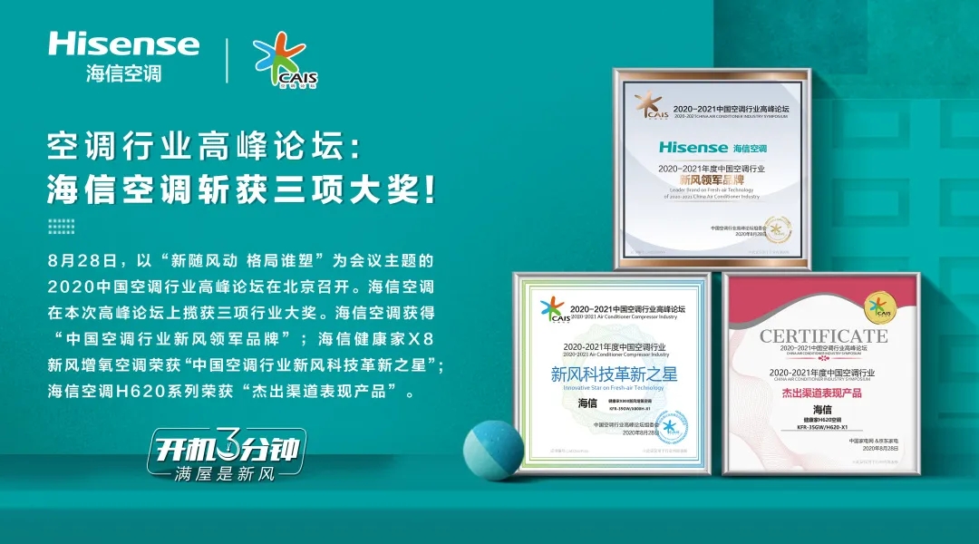 8月28日,以“心随风动,格局谁塑”为主题的2020-2021中国空调行业高峰论坛隆重开幕。新风领导者海信空调一举揽获三项大奖。